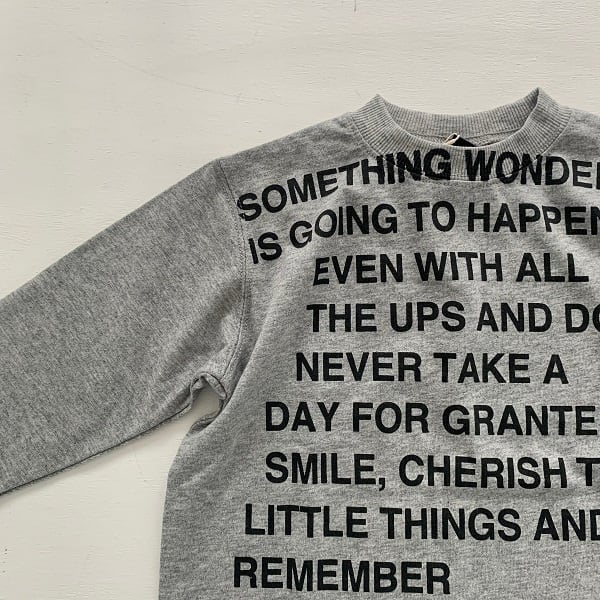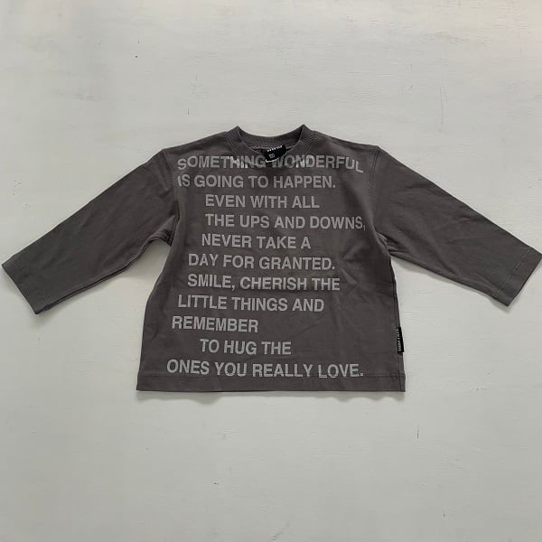 英字プリントがポイントの製品染めTシャツです