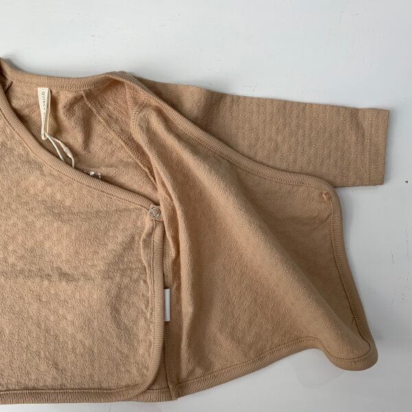 合わせの内側はスナップボタン外側はヒモで結ぶ仕様になっています