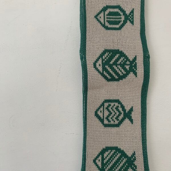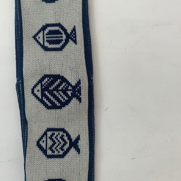 フロントは民藝風にデザインした魚柄